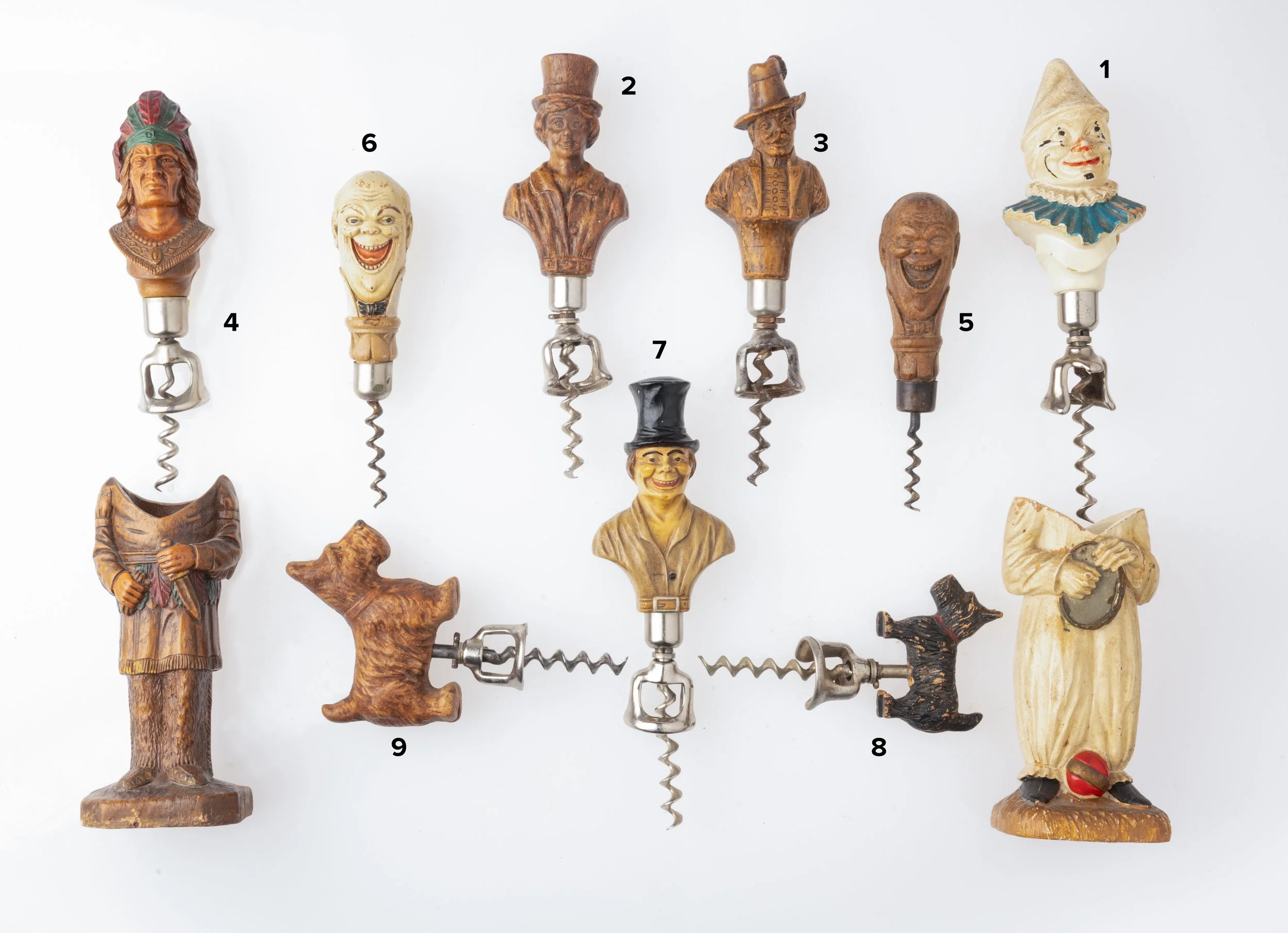 These corkscrews wThe Syroco Company was extremely creative in making both full body and corkscrews without the full bodies. They come in both Walnut Stain and Painted.