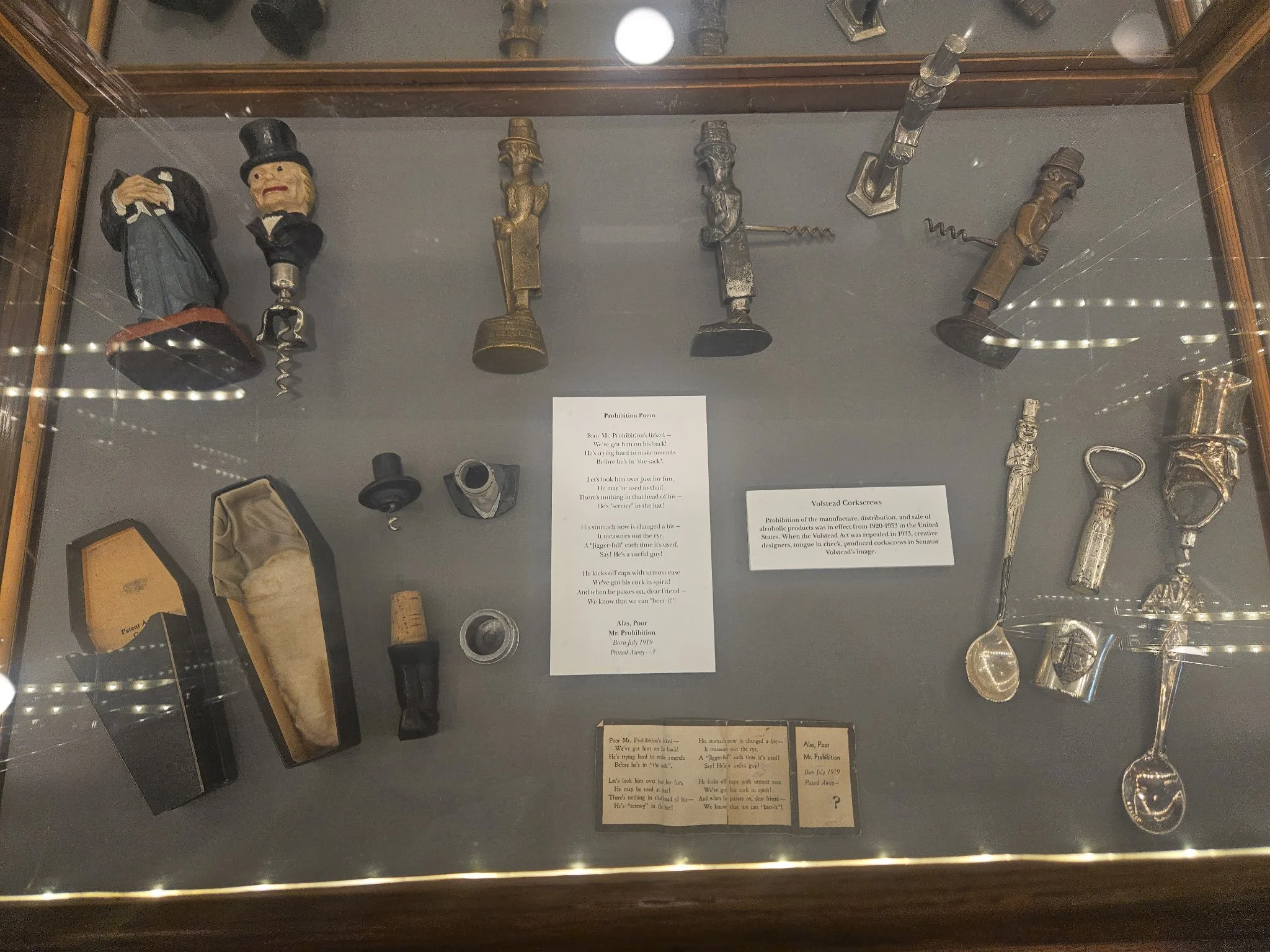 Prohibition corkscrews came in many different versions of Senator Volstead. The coffin is the rarest.